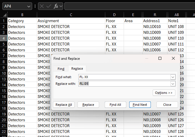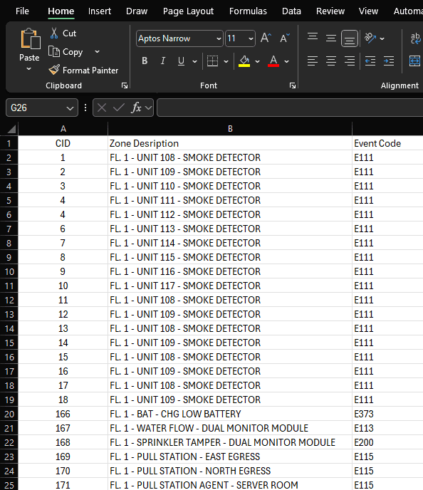 Generate central station / monitoring upload files directly from the design. No more manual typing of point lists—FireGrid exports them in one step, cutting down on setup time and typos that can cause nuisance tickets later.