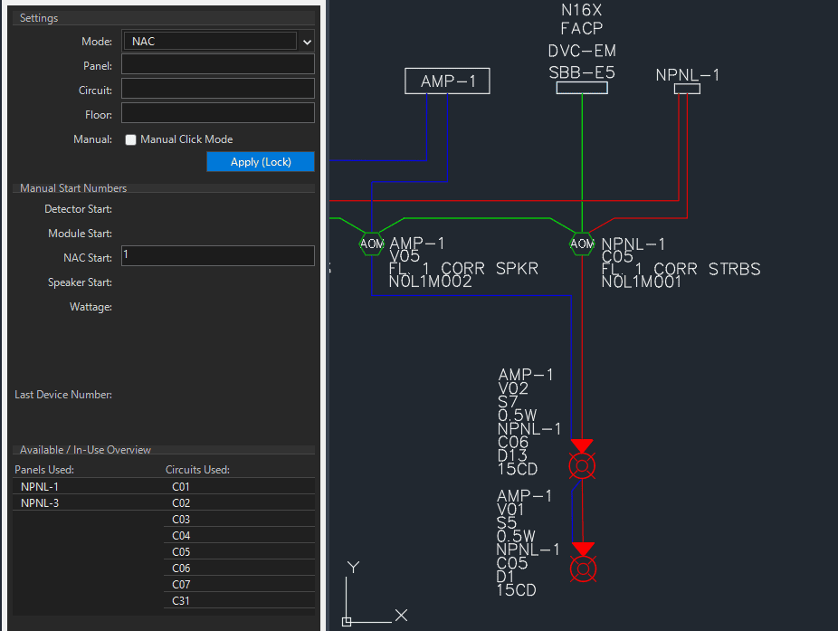 Apply NAC addressing while you’re laying out notification circuits, instead of as a separate task. FireGrid assigns addresses and organizes runs onto the right layers as you go, so risers and programming data fall out of the same work.